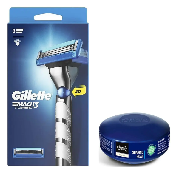 Станок для гоління Gillette Mach3 Turbo 3D Motion (1 картридж) + Wilkinson Essential Мило для гоління 125 г