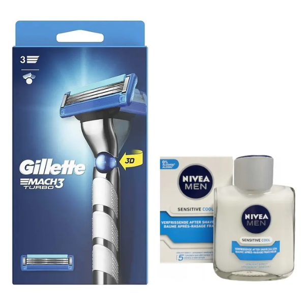 Станок для гоління Gillette Mach3 Turbo 3D Motion (1 картридж) + Nivea Men Sensitive Cooling бальзам після гоління 100 мл